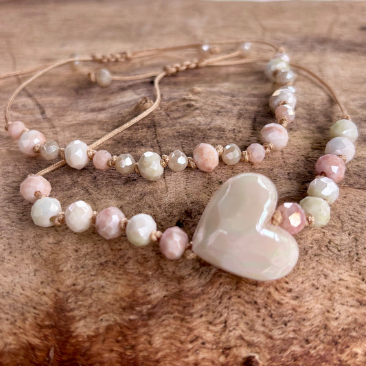 Big Heart Creme Pearl Bracelets - Set of Two - Resizable