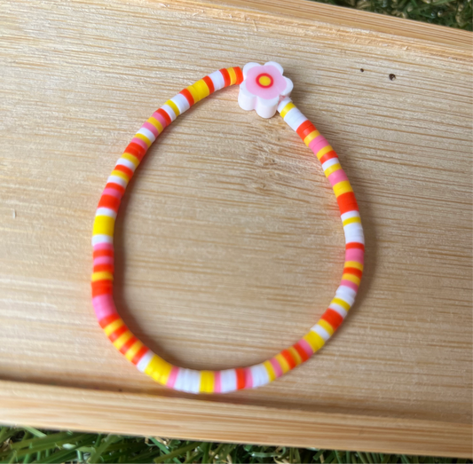 Colourful Clay Bead Bracelets with white flower charm - Stretchy