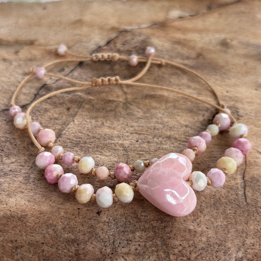 Big Heart Pink Bracelets - Set of Two - Resizable