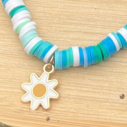 Sea Splash Daisy - Clay Bead Bracelets with Daisy Charm - Stretchy