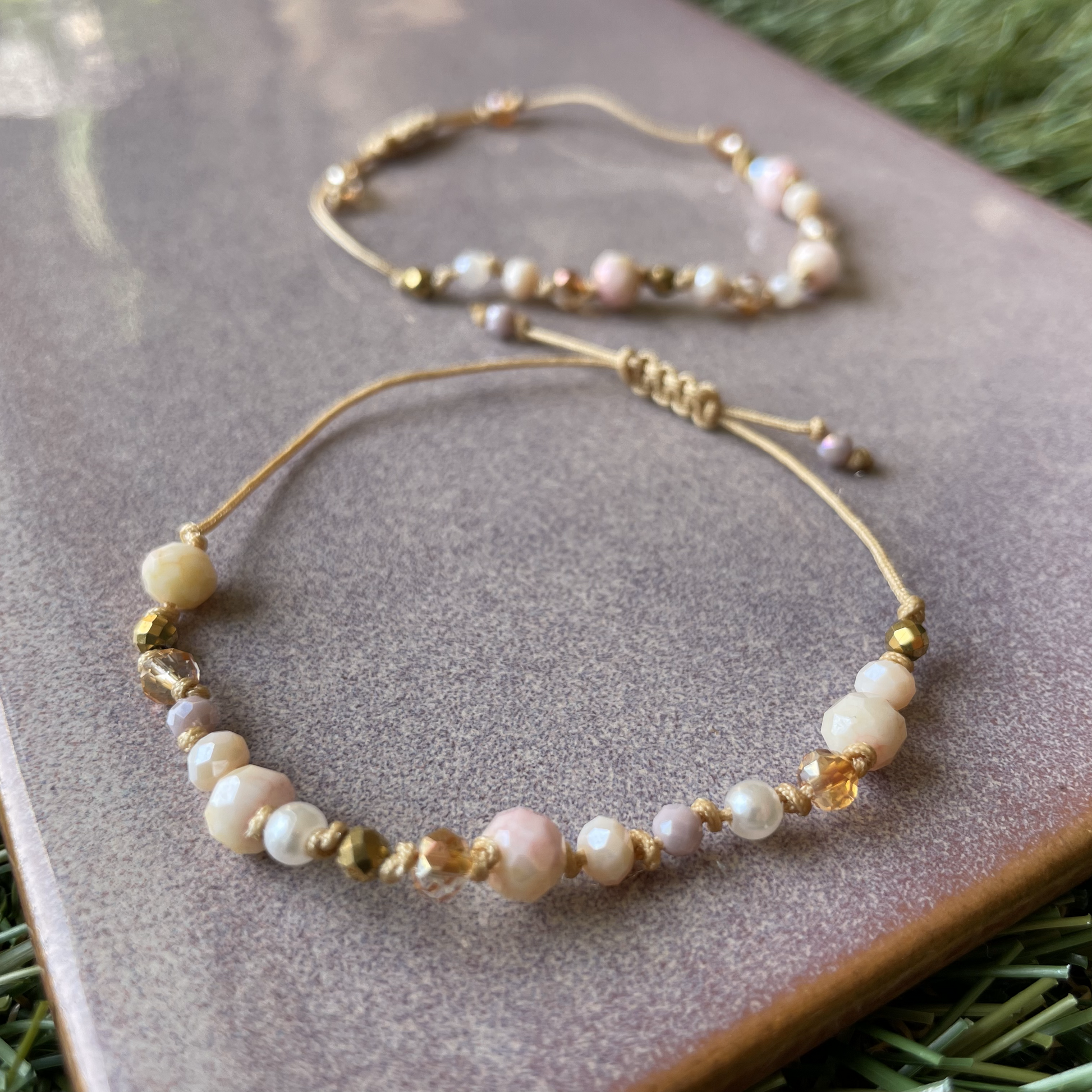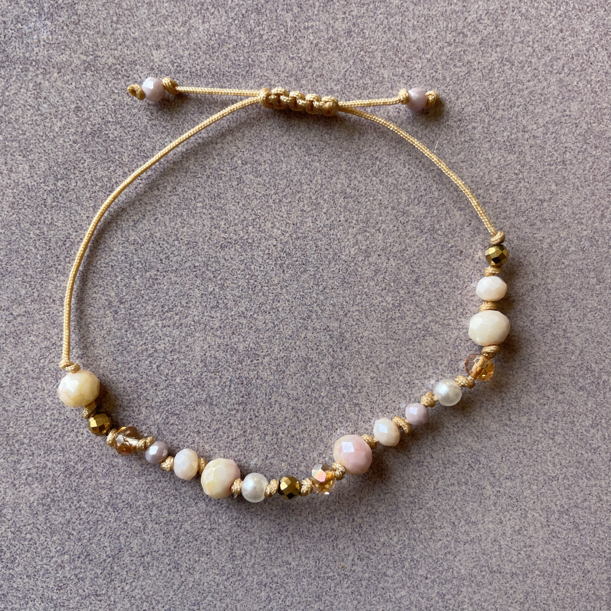 Single glass bead bracelet in classy soft pink colors. The perfect look for a summer evening.